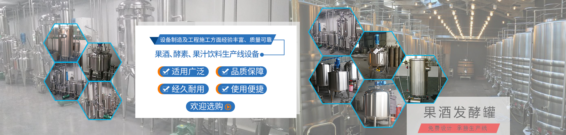 東鐵專業生產高剪切乳化機、殺菌鍋、果汁飲料生產線、果酒生產線、生物發酵罐、不銹鋼發酵罐、不銹鋼攪拌罐等 more+